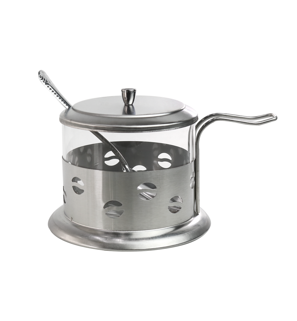 AÇUCAREIRO VIDRO E INOX COM COLHER E TAMPA- 200 ML - NS1369-B