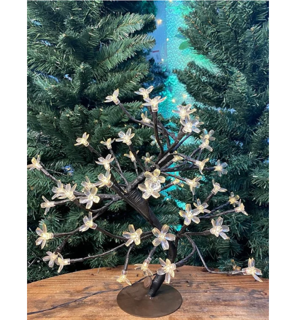 Seus galhos são maleáveis e você pode moldar do jeito que desejar. Possui 48 leds, compondo uma lâmpada acesa para cada flor de cerejeira. Moderna e delicada, é uma peça de decoração que pode ser usada o ano inteiro. Luz branca.
