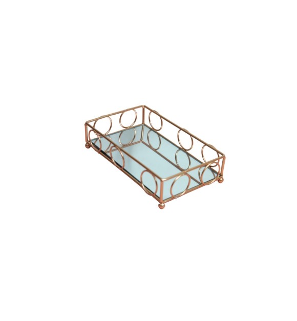 BANDEJA DE METAL ESPELHADA RETANGULAR DE VIDRO 20X12.5CM - KIT201-GR.