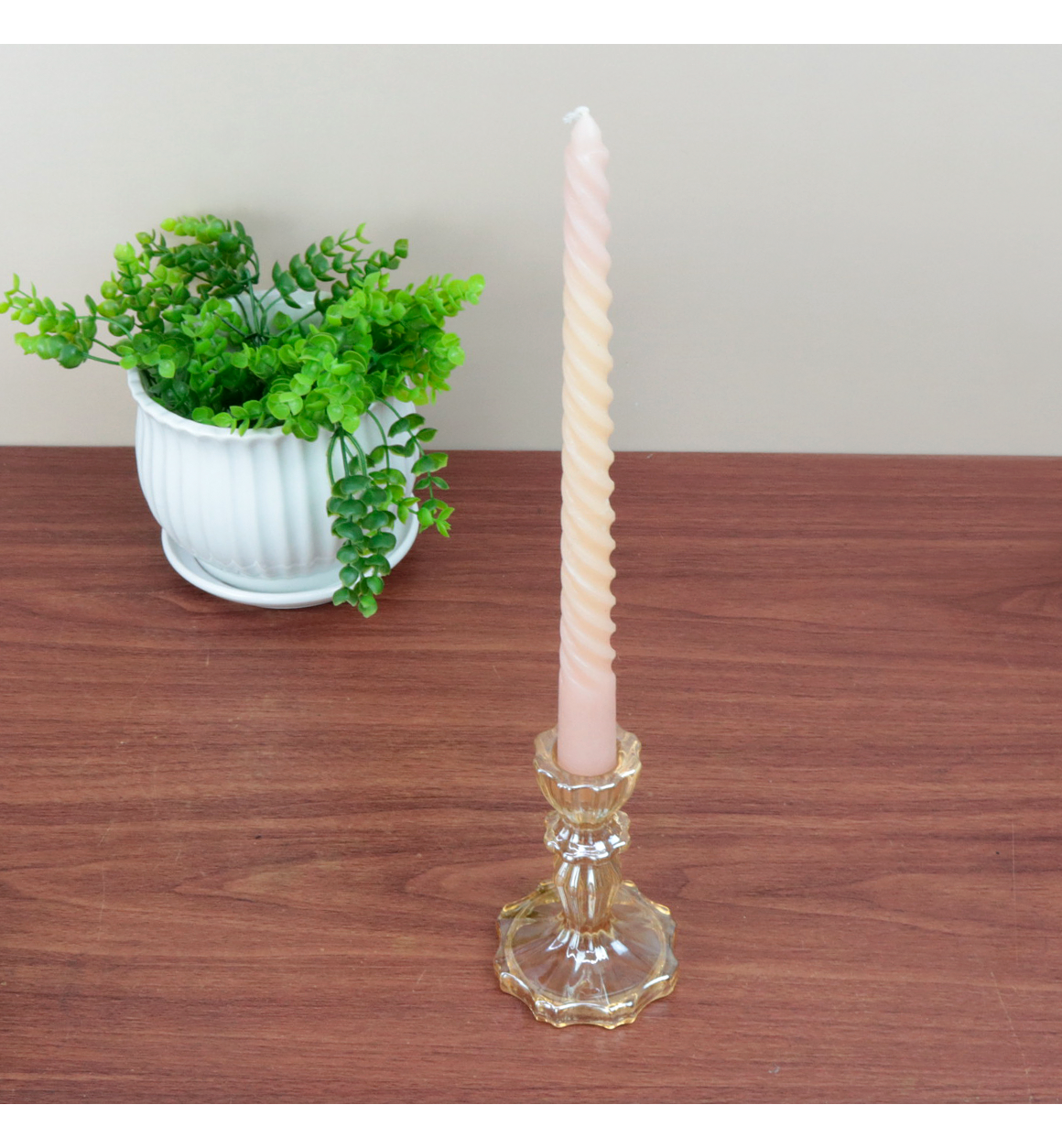 Encante seus ambientes com o charme e o brilho acolhedor do Castiçal de Vidro Âmbar.