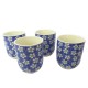- CONJUNTO DE 04 CANECAS ORIENTAL PARA CHÁ DE PORCELANA 150ML (CADA) ESTAMPA FLORAL - CN30A-AZ