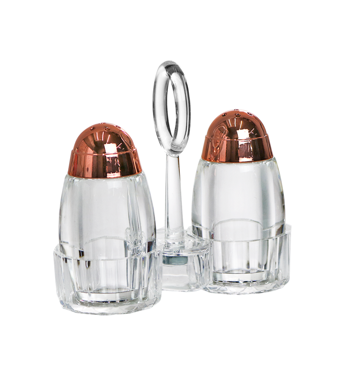 KIT SALEIRO E PIMENTEIRO COM SUPORTE EM ACRILICO GOLD ROSE - MG5115