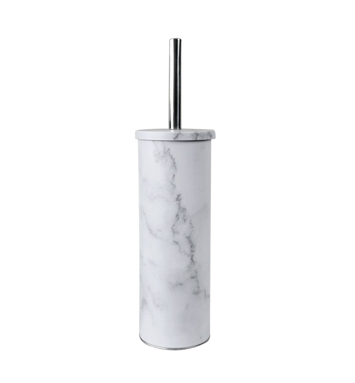 A escova sanitária conta com cerdas flexíveis, ideais para uma limpeza mais fácil e precisa dos cantos. Seu suporte é feito em aço inox marmorizda, trazendo assim uma aparência sofisticada e elegante ao seu banheiro. Possui copinho interno em plástico para armazenamento da escova.