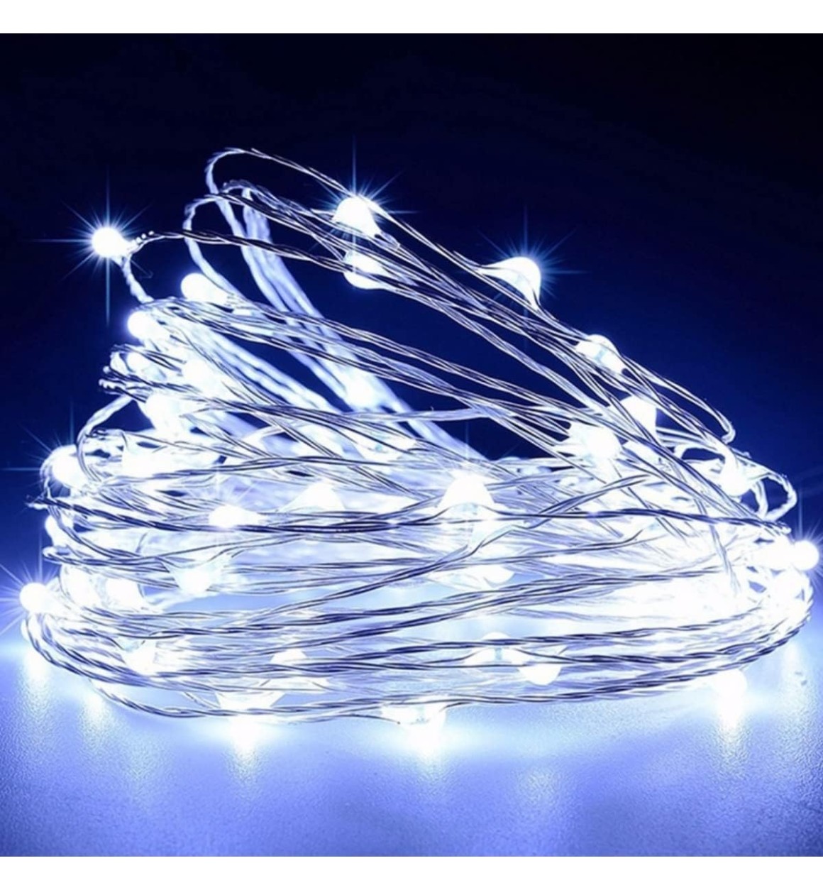 É um tipo de iluminação decorativa que consiste em pequenas lâmpadas Leds espaçadas em um fio flexível. Esses fios são semelhantes a fios de cobre finos, permitindo que sejam facilmente moldados e dobrados em várias formas. São utilizados para decoração, podendo ser enrolados em torno de plantas, escadas, cortinas para criar um efeito mágico e encantador. São usados em eventos como festas, casamentos . Uso Interno. Luz branca suave.