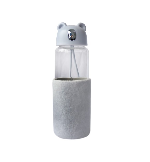GARRAFA DE VIDRO BEAR BOTTLE COM CAPA DE VELUDO COM TAMPA E ALÇA 350ML - GDR0456-LL