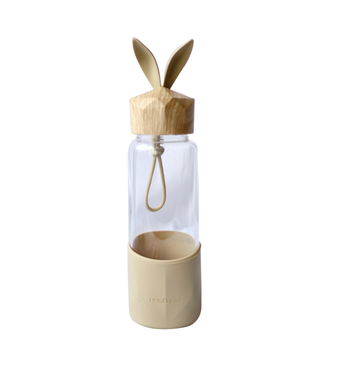 GARRAFA DE VIDRO RABBIT BOTTLE COM CAPA DE SILICONE E TAMPA PLÁSTICA - GDR0458-BG