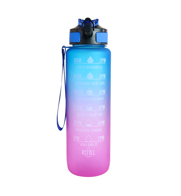 GARRAFA SQUEEZE DE PLÁSTICO MOTIVACIONAL COM CANUDO 1 LITRO - CZ22772-AZ.