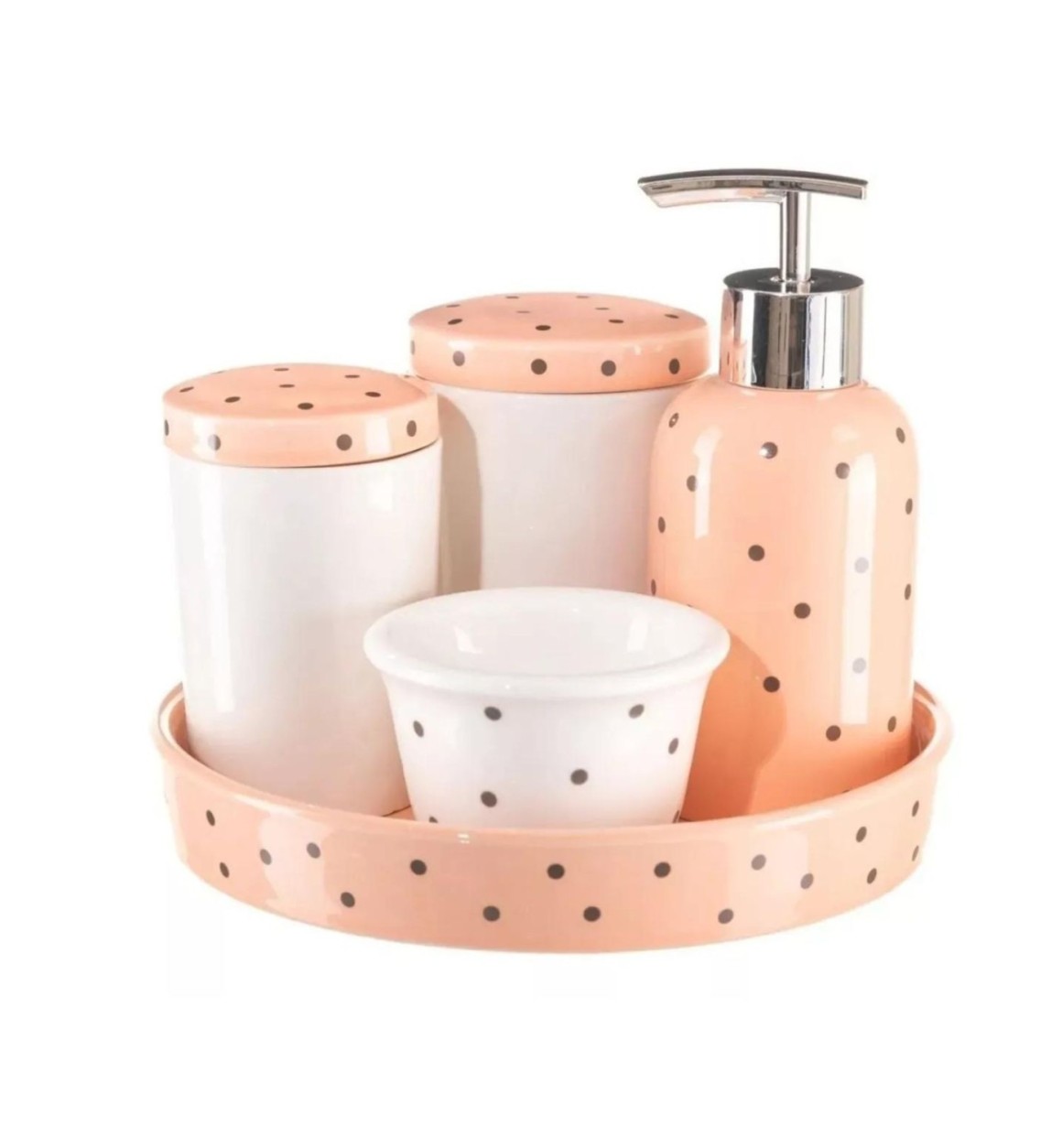 JOGO DE BANHEIRO HIGIENE DE PORCELANA ESTAMPA POÁ COM 5 PEÇAS - 2080