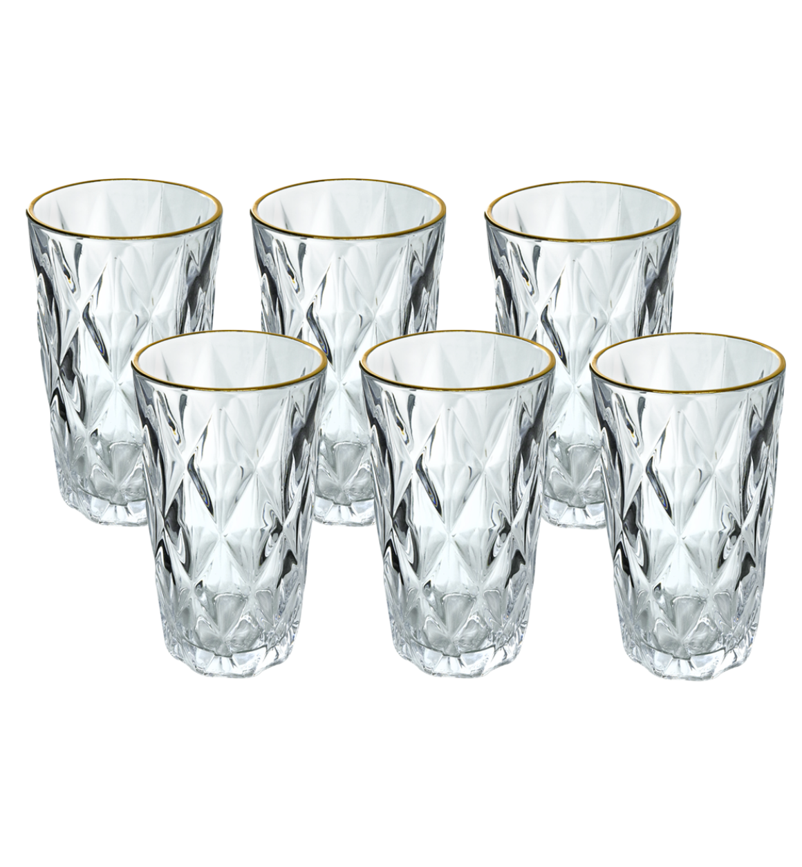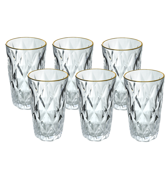 JOGO DE COPOS DE VIDRO COM BORDA DOURADA 6 PEÇAS 270ML - CA16213