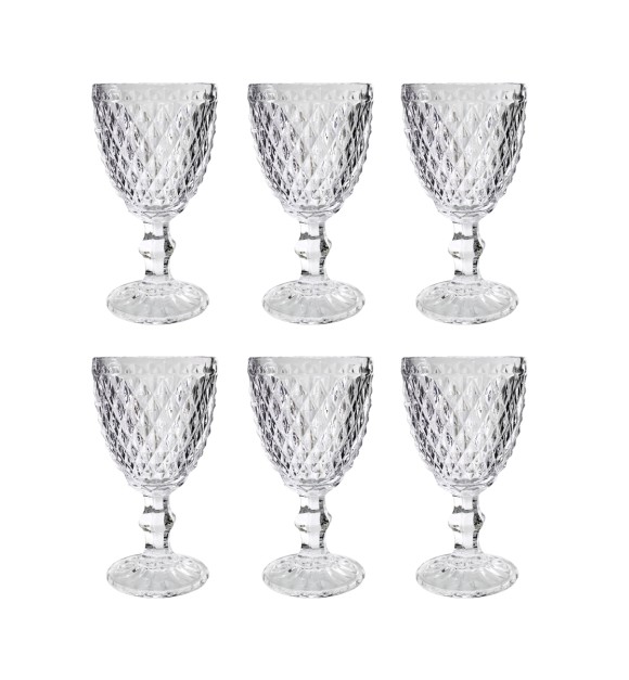 JOGO DE TAÇA DE VIDROS EM ALTO RELEVO BICO DE ABACAXI COM 06 PEÇAS 300ML - 4927