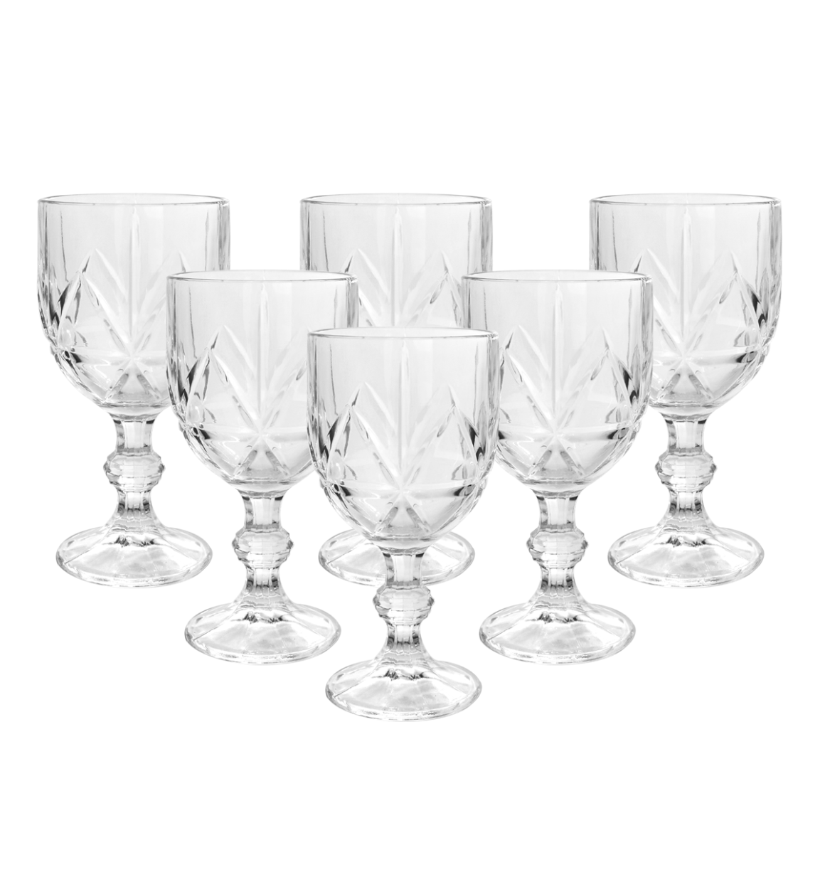 Esse lindo conjunto de taças é composto por 6 unidades e é ideal para diversas bebidas e tem capacidade de 300ml e são feitas de vidro.