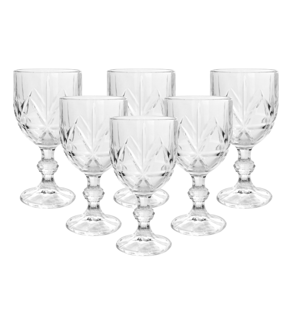 JOGO DE TAÇAS COM 6 PÇS EM VIDRO COM RELEVO 300ML - 4929