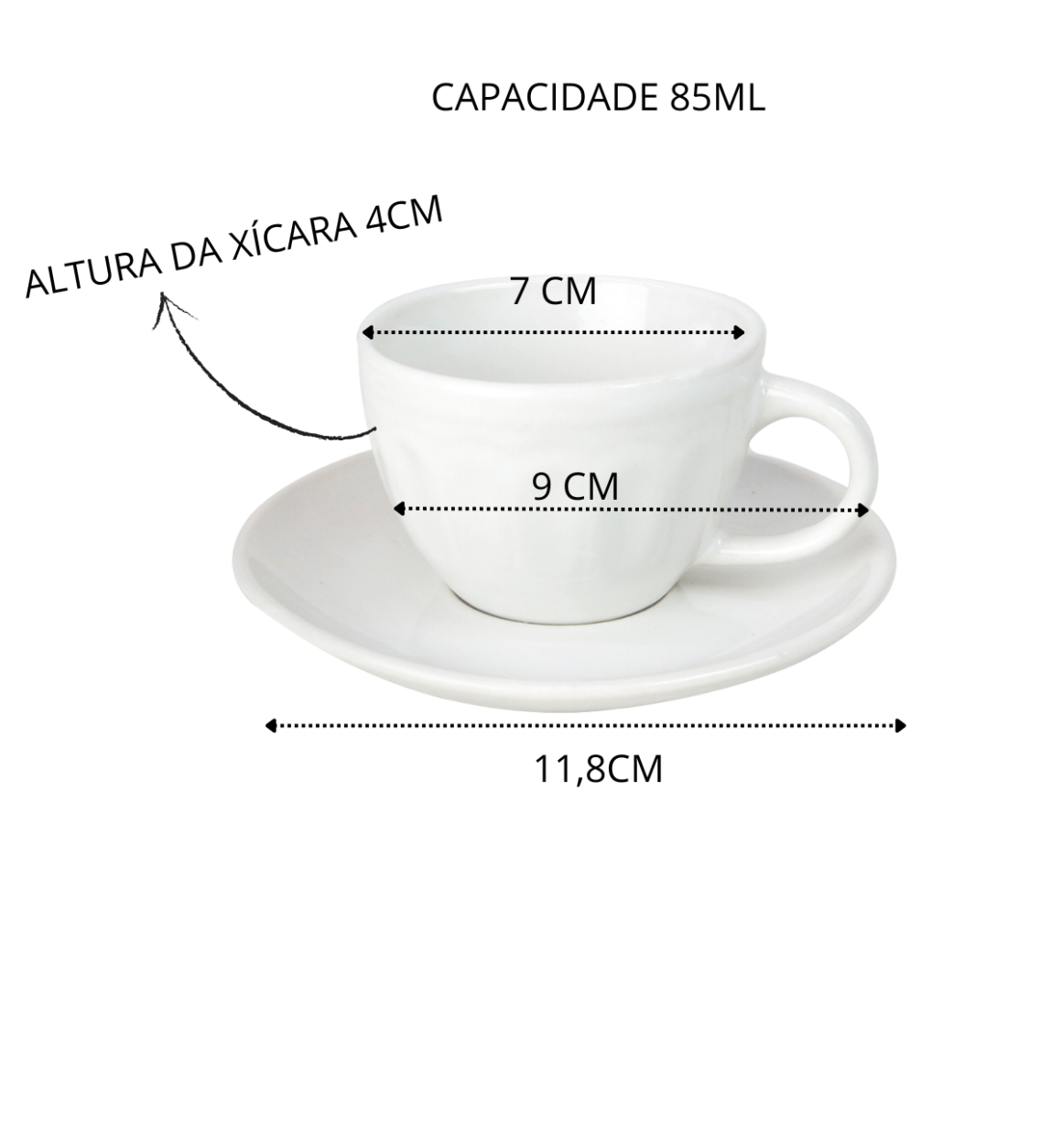 Sirva seu café com charme e elegância com este jogo de xícaras com pires de cerâmica branca, composto por 12 peças (6 xícaras e 6 pires). Cada xícara tem capacidade de 85 ml, ideal para café expresso ou café coado, tornando seus momentos ainda mais especiais.