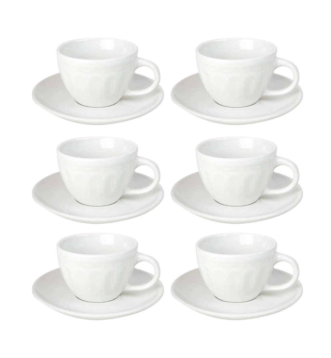 JOGO DE XÍCARAS COM PIRES DE CERÂMICA BRANCA 85ML 12 PEÇAS - CA18095