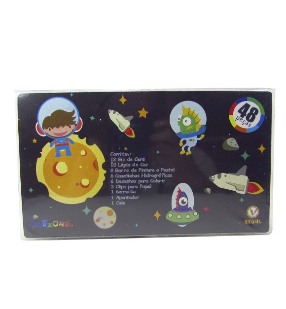 KIT DE PINTURA EM MALETA CAPA TRANSPARENTE E ESTAMPA ASTRONAUTA 48 PEÇAS - MT48T-A