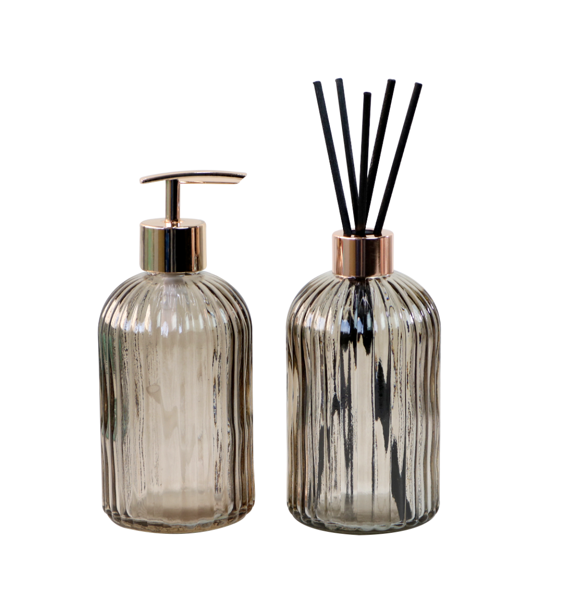 KIT DIFUSOR COM PORTA SABONETE LIQUIDO DE VIDRO EM ALTO RELÊVO 400ML - 96144-FUMÊ