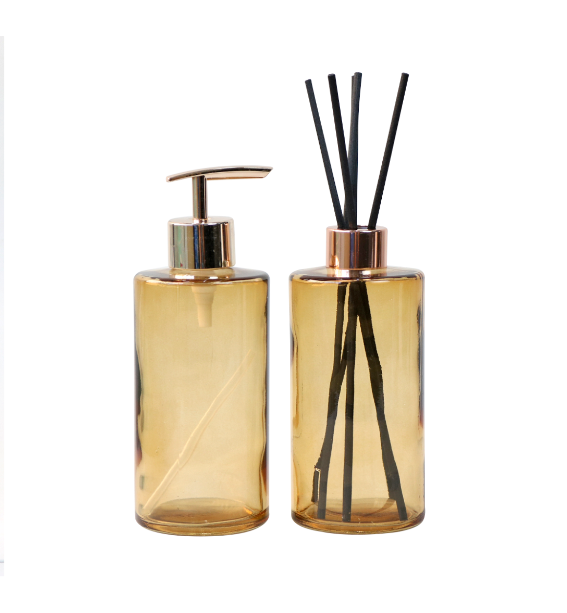 KIT FRASCO DIFUSOR COM PORTA SABONETE LIQUIDO DE VIDRO 340ML - 96146-AMBAR.