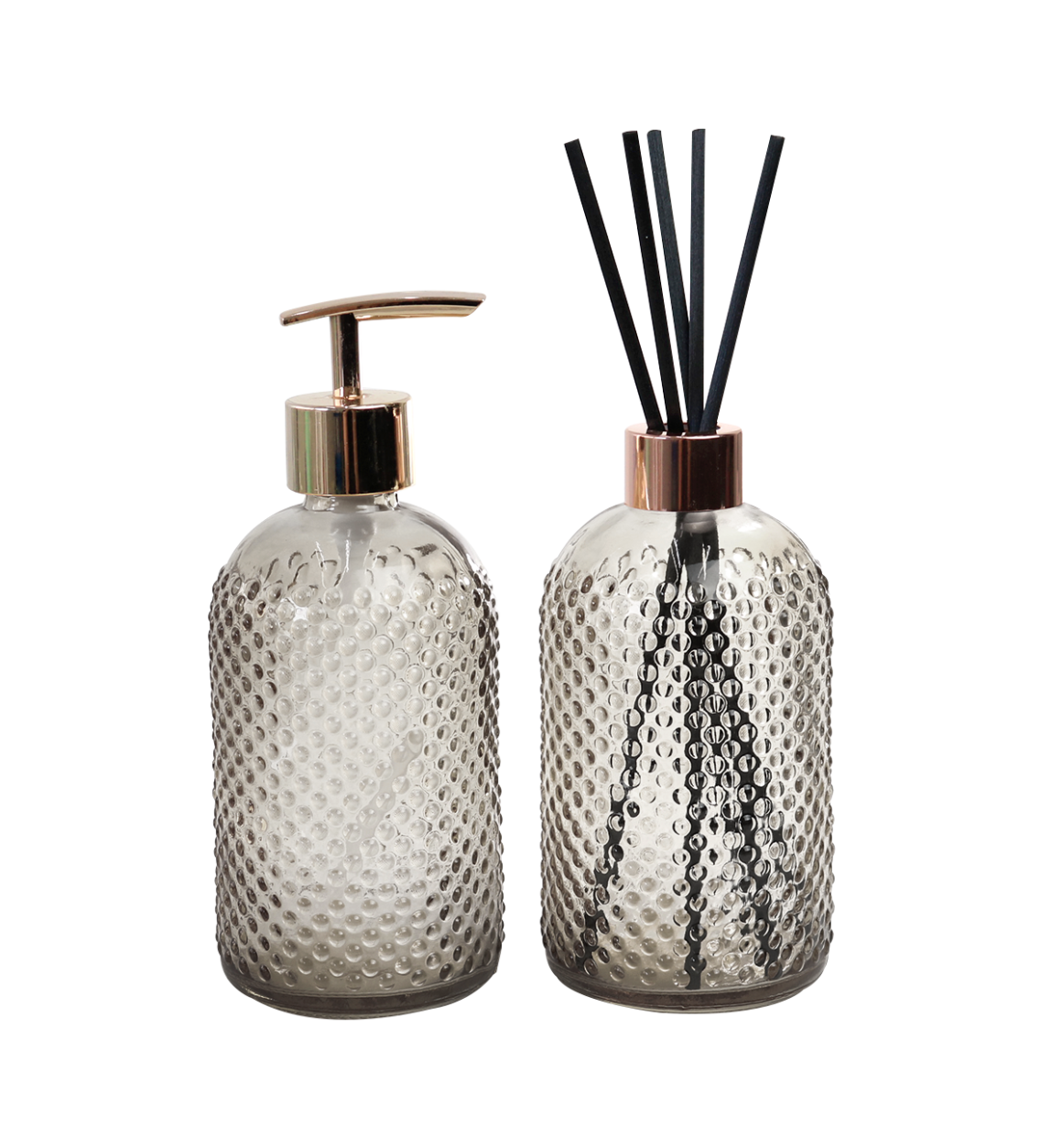 KIT FRASCO DIFUSOR E PORTA SABONETE LÍQUIDO DE VIDRO 02 PEÇAS 400ML - 96147-FUMÊ.