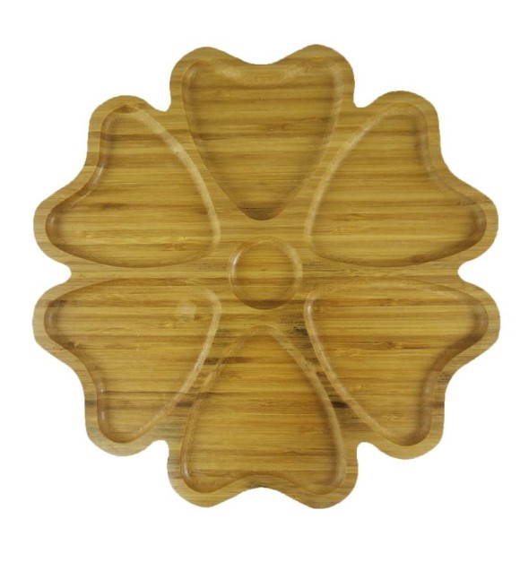 PETISQUEIRA DE BAMBU COM 06 DIVISÓRIAS E UMA CENTRAL PARA MOLHOS 30CM -TRC8072