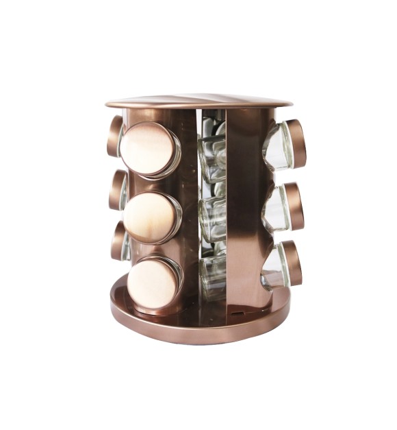 PORTA TEMPERO GIRATÓRIO REDONDO COBRE COM 12 PEÇAS - BF4070.