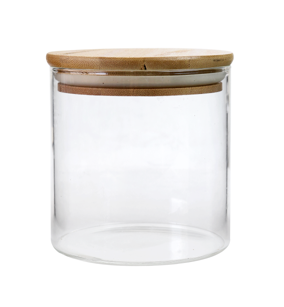 POTE DE VIDRO 600 ML COM TAMPA EM BAMBU E VEDAÇÃO DE SILICONE - BF2983