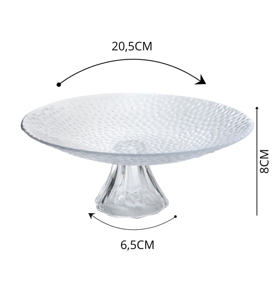 Com 20,5 cm de diâmetro, é ideal para servir bolos, tortas, doces e pequenas sobremesas de maneira elegante. Seu pé elevado oferece um visual mais refinado, valorizando a apresentação e trazendo um toque clássico à sua decoração.