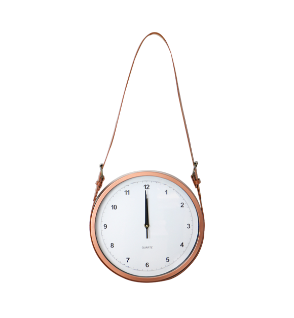 Relógio de parede decorativo de plástico 30 cm com alça de ajuste em couro sintético. Ideal para decorar e compor ambientes de sua preferência.