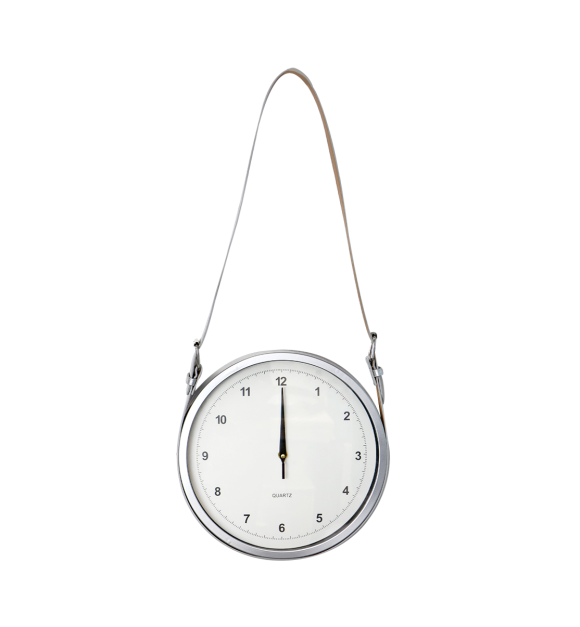 Relógio de parede decorativo de plástico 30 cm com alça de ajuste em couro sintético. Ideal para decorar e compor ambientes de sua preferência.