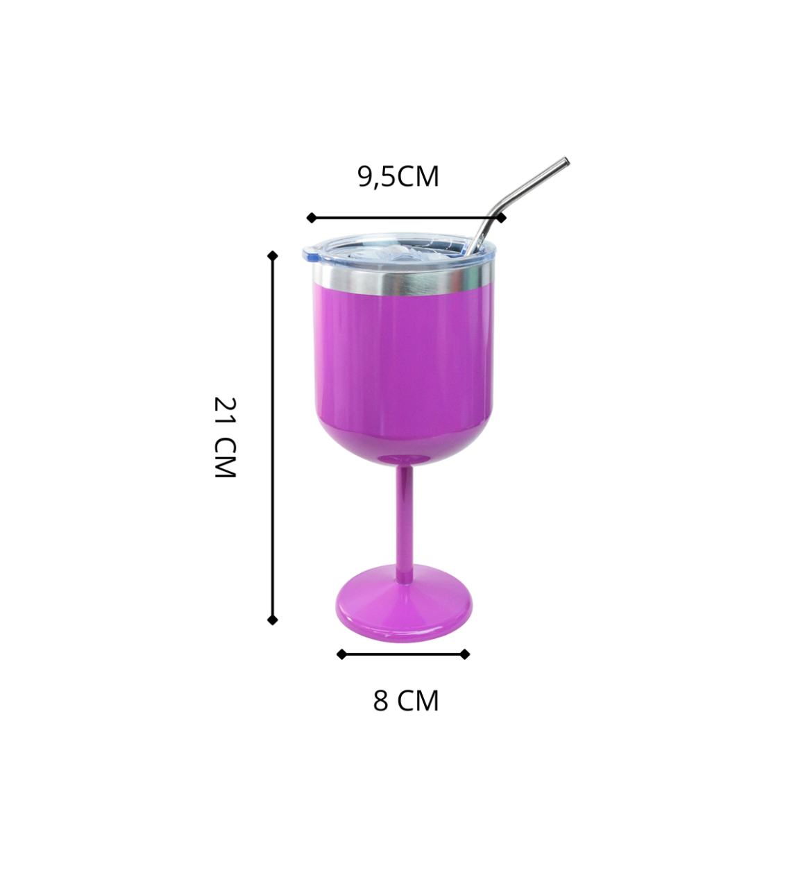 Taça com interior em inox e parte externa colorida, acompanhada de tampa plástica prática e canudo reutilizável em inox. Perfeita para bebidas geladas, não possui função térmica ou isotérmica.