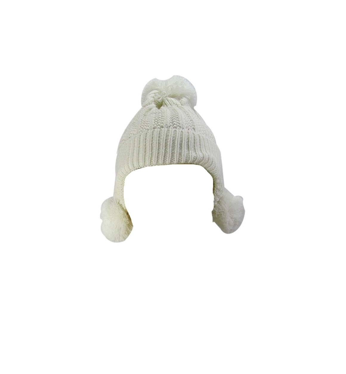 Touca Infantil com acabamento no topo e nas pontas de pompons, produto 100% poliéster.