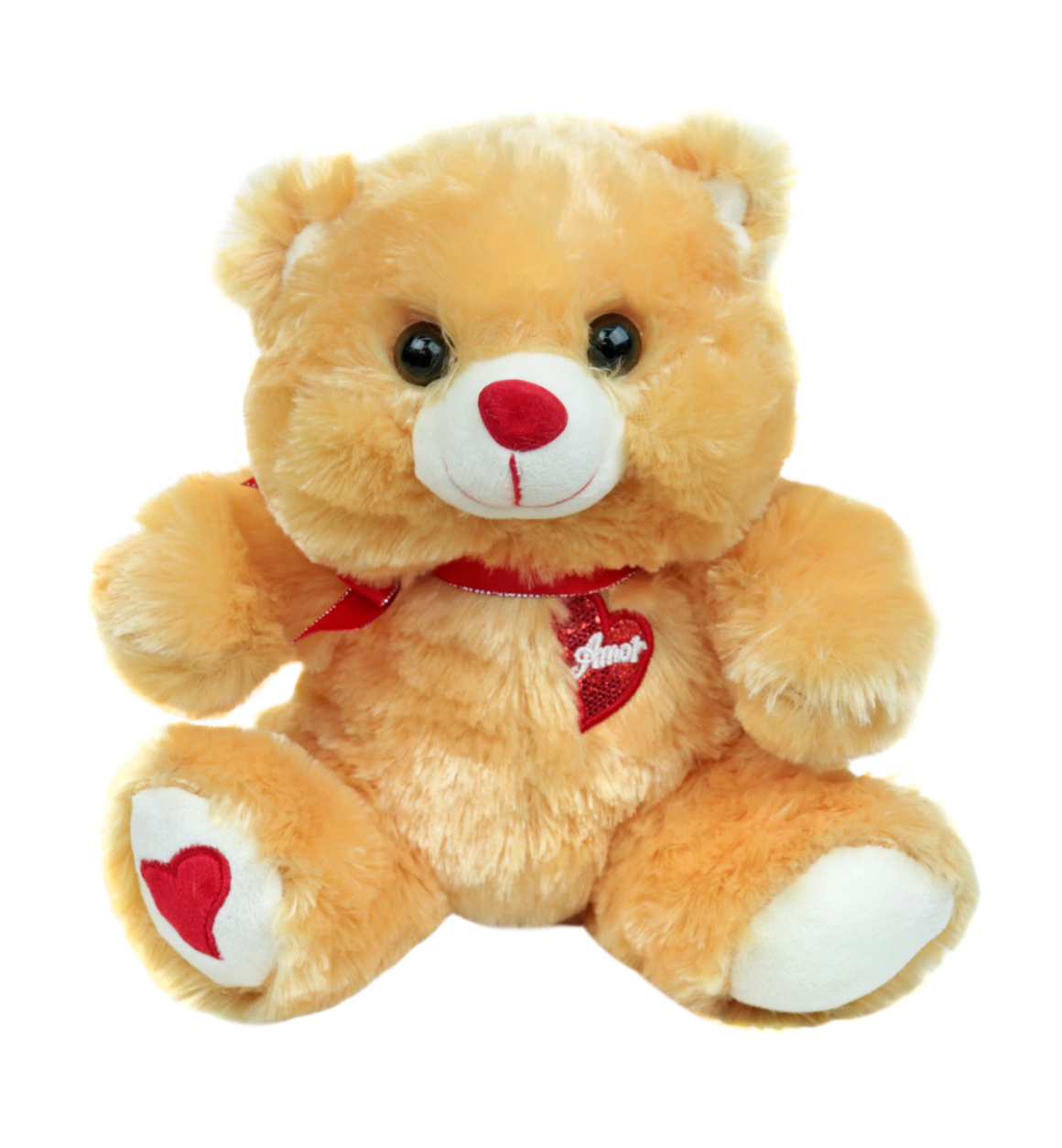 URSO DE PELUCIA DE POLIESTER COM LAÇO 25CM - FE6918-CARAMELO