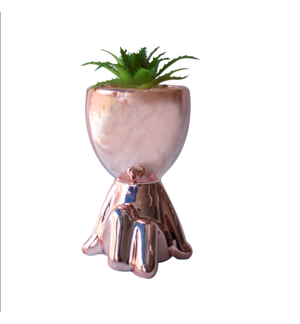 Vaso decorativo com pernas recolhidas feito em cerâmica e suculentas artificial. Ideal para decorar racks, aparadores, estantes tornando o ambiente muito mais elegante e moderno.