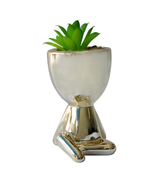 Vaso decorativo com pernas dobradas feito em cerâmica e suculentas artificial. Ideal para decorar racks, aparadores, estantes tornando o ambiente muito mais elegante e moderno.